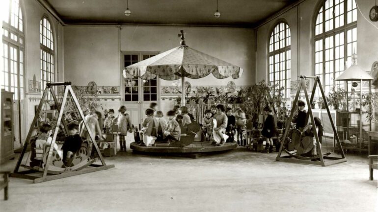 Ce type de jeux équipait les écoles de la cité-jardins durant l’entre-deux-guerres ainsi que la crèche Darracq située dans le bas de Suresnes.