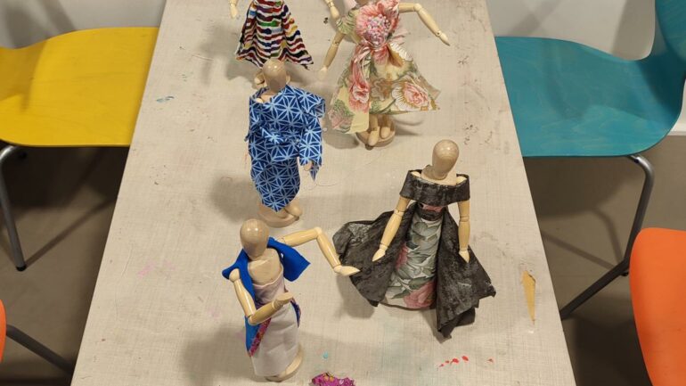 Rassemblez vos inspirations, préparez votre patron puis découpez et assemblez des tissus sur un mannequin miniature.