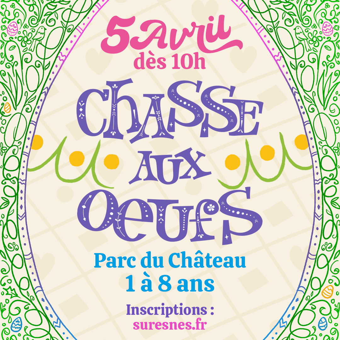 Renseignements et inscriptions sur le site de la Ville de Suresnes : Chasse aux oeufs