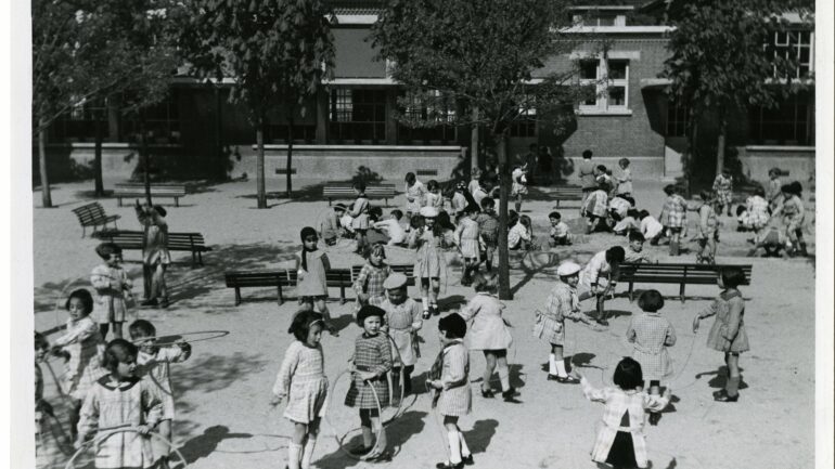 Jeux dans le préau de l'école Wilson de la cité-jardins (c)MUS, inv. 997.00.2876