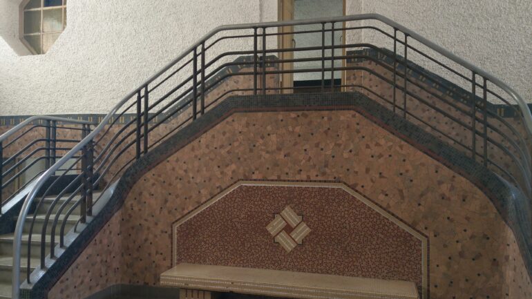 Ferronneries de l'accès vers la piscine du collège Henri Sellier en 2021 (c)MUS