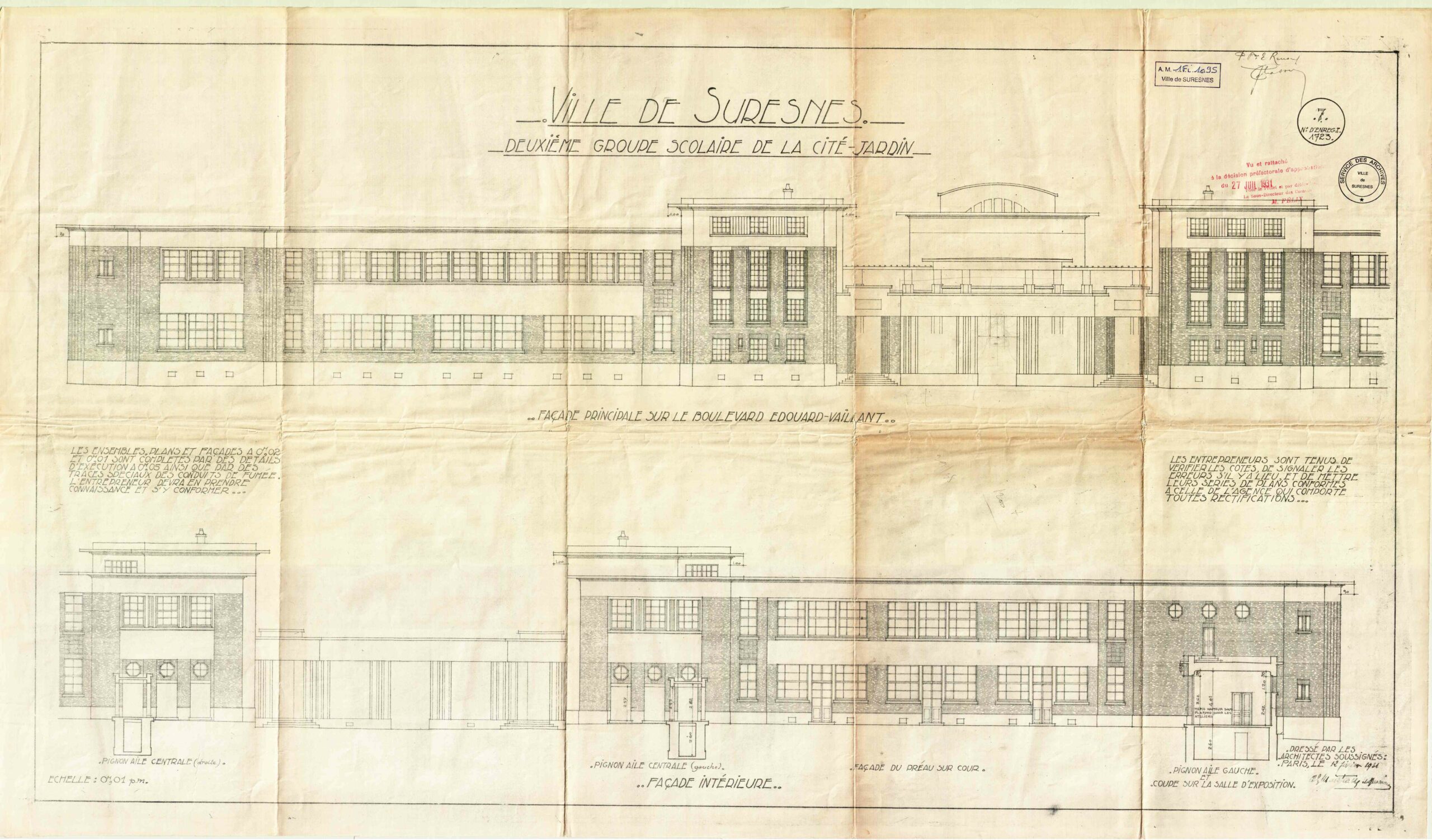 Façade du groupe scolaire Aristide Briand (c)Archives communales, 1Fi1095