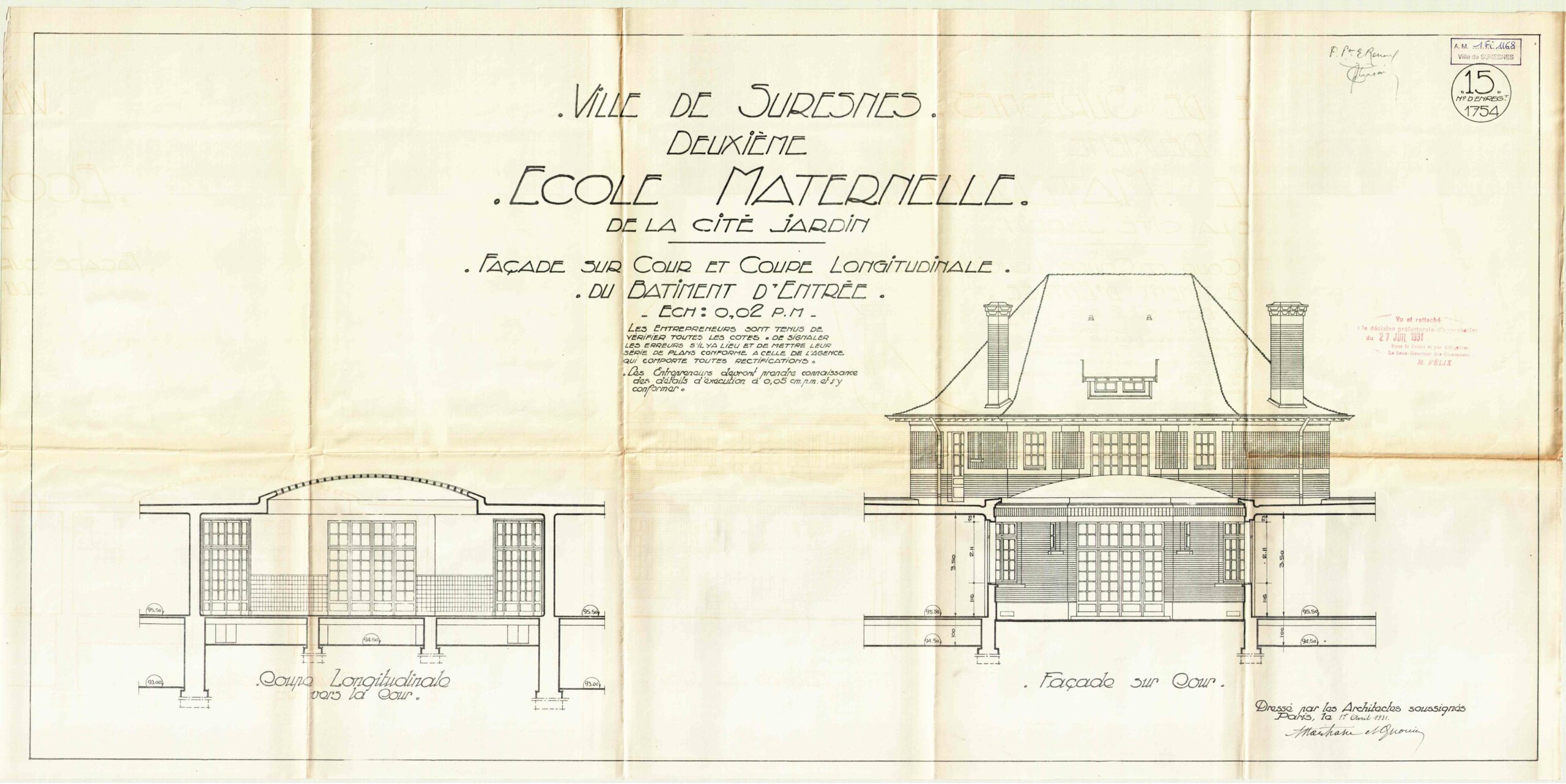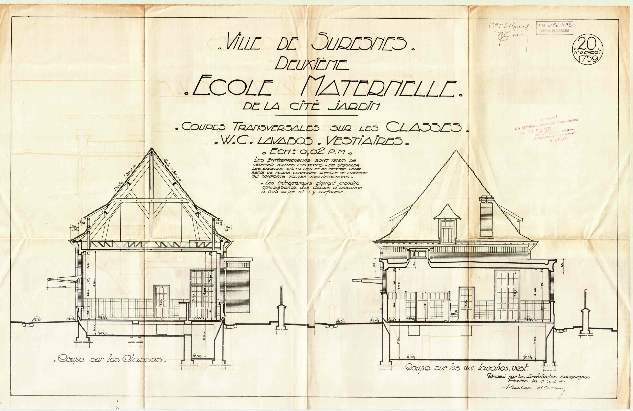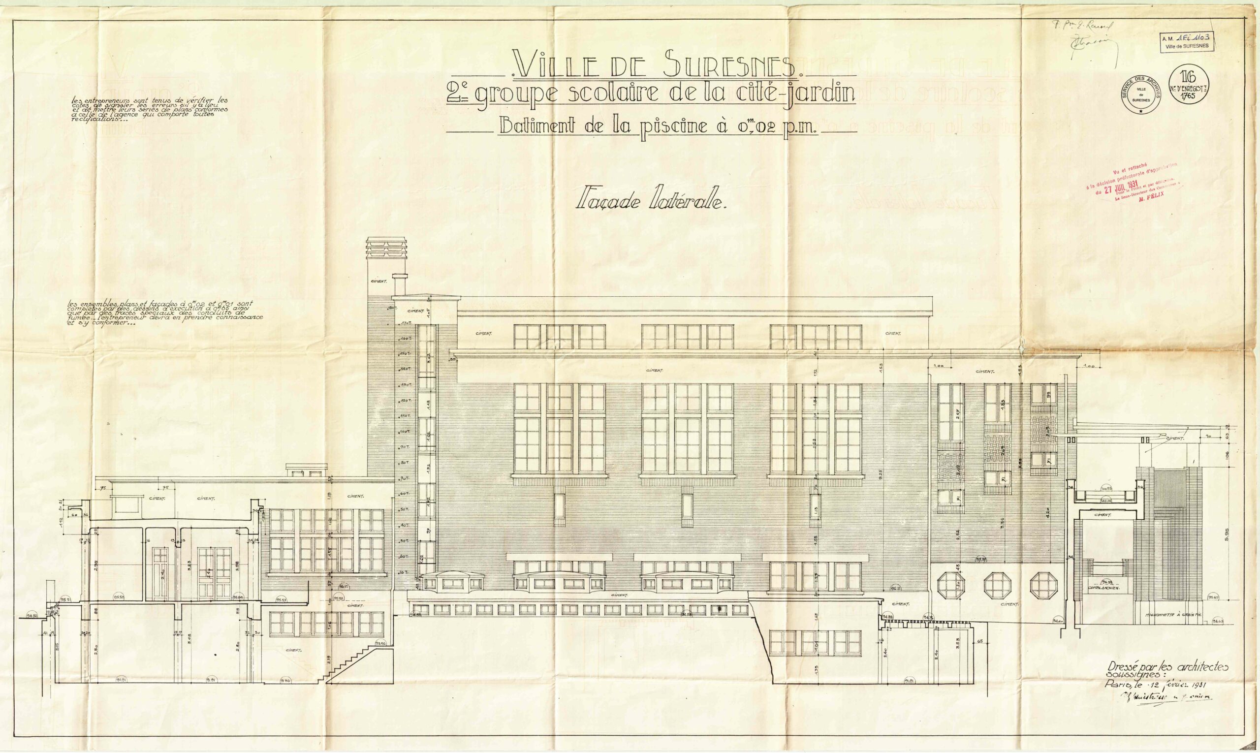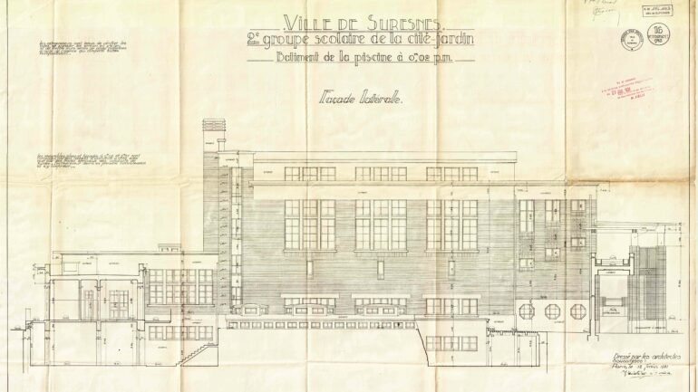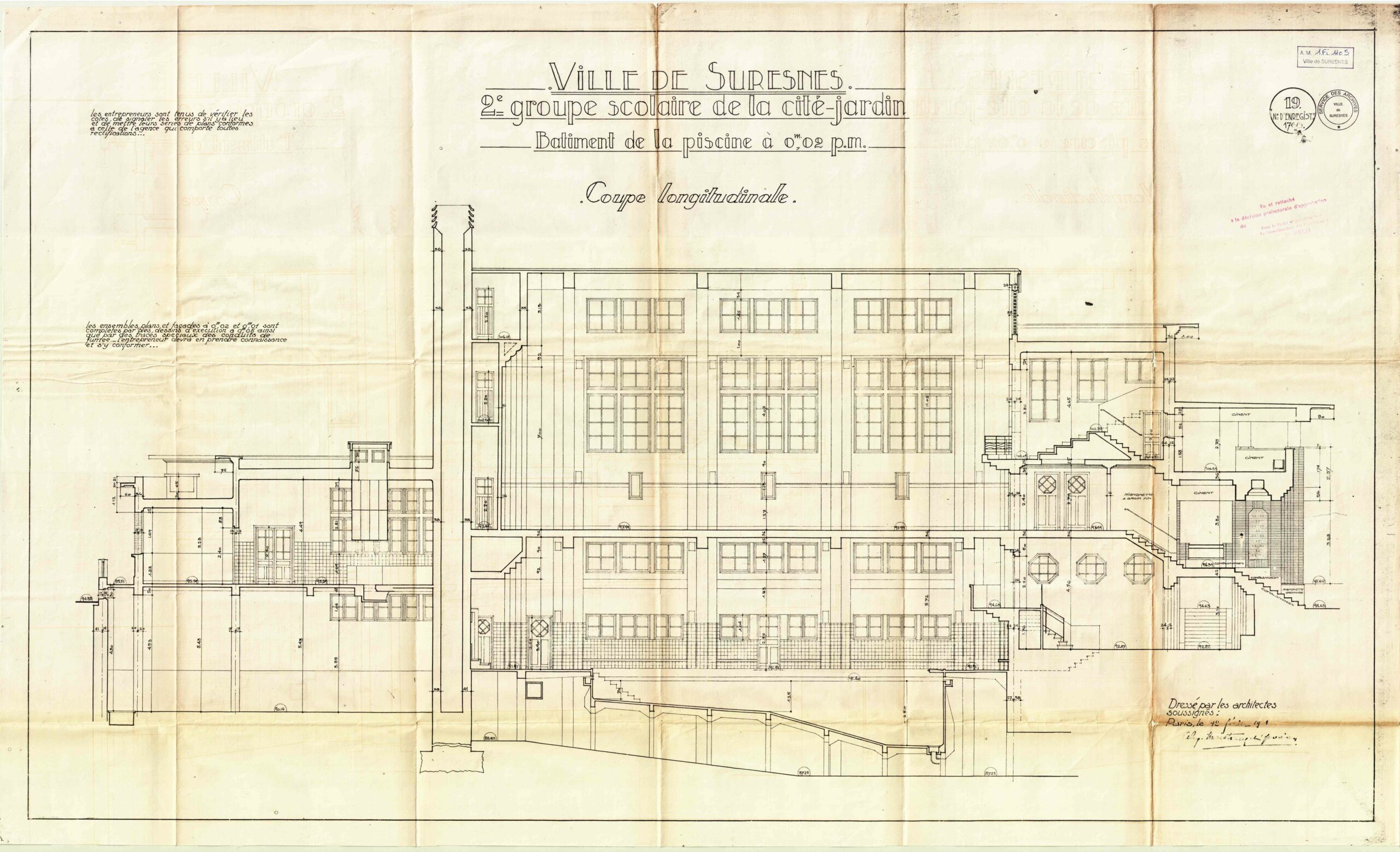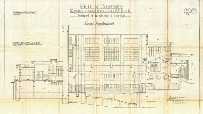 Vue en coupe de la piscine du groupe scolaire Aristide Briand (c)Archives communales, 1Fi1105