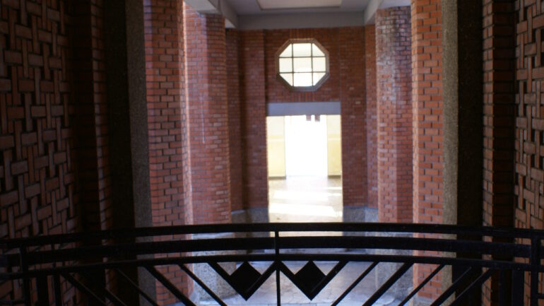 La symbolique de l’eau se retrouve également dans le hall où la Fontaine de l’enfance accueille les élèves.