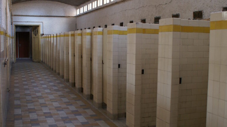 Cabines de douche de la piscine du collège Henri Sellier en 2021 (c)MUS
