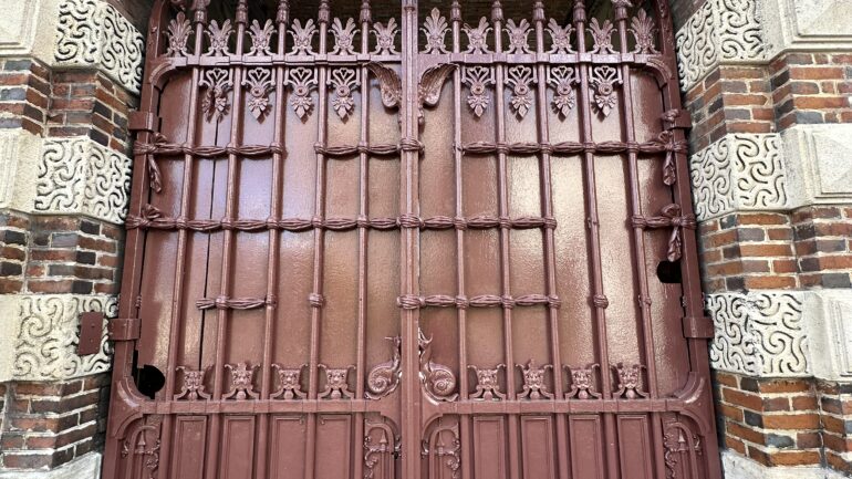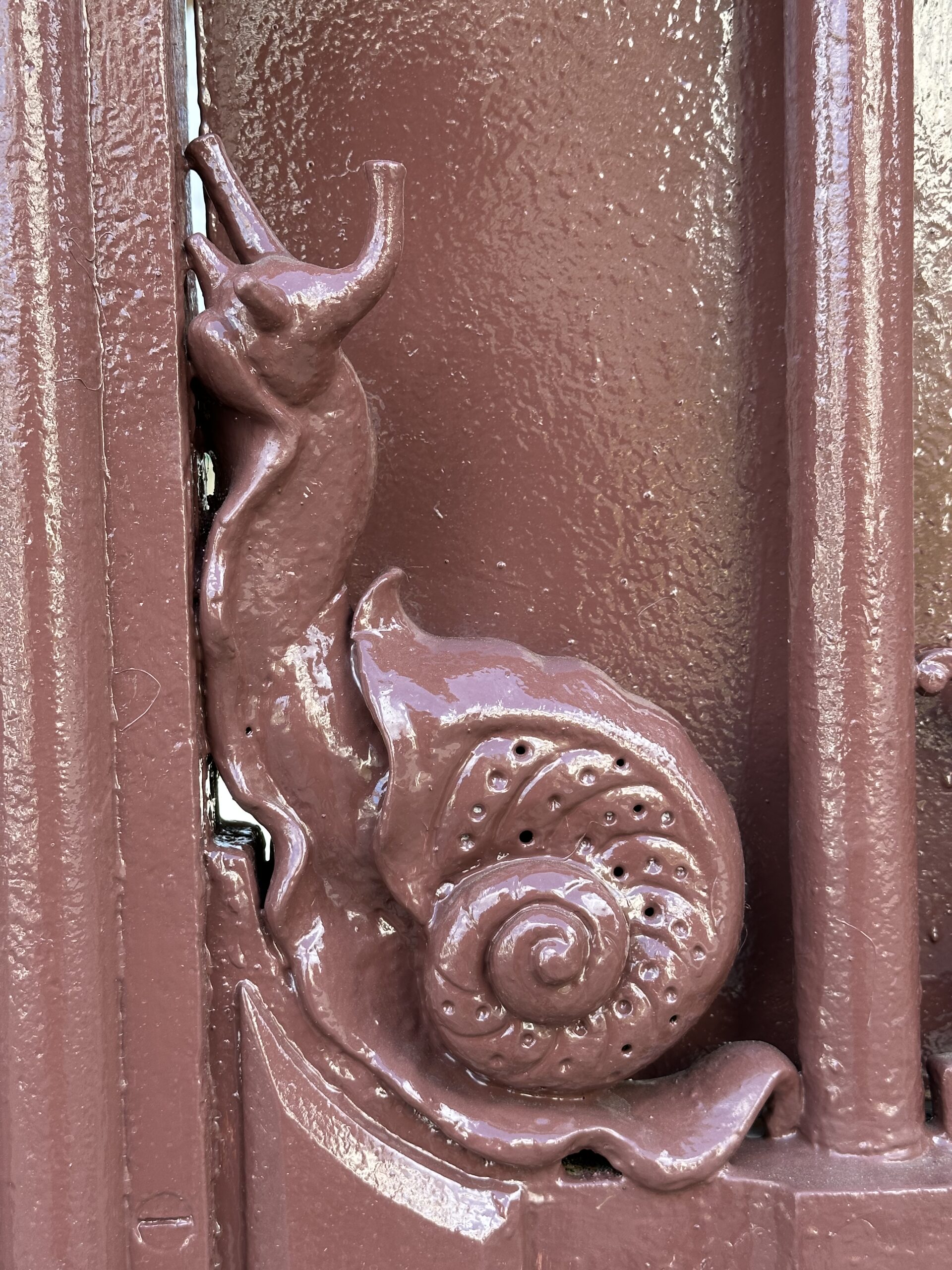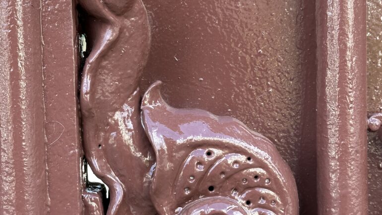 Enfin, la grille portant des rubans et des escargots a entièrement été repeinte selon sa couleur d’origine.